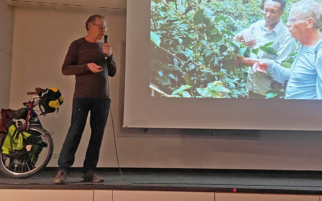 Den „Alltag“ eines Radreisenden zwischen Schlammpfützen und Cola-Automaten stellte Reiner Garreis mit viel Wortwitz dar. Er erzählte frei, ohne Manuskript, aus der Erinnerung, und die Begeisterung war jederzeit spürbar.